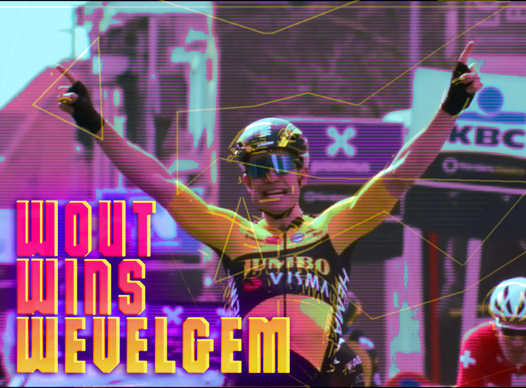 Wout van Aert has written the classic Gent-Wevelgem to his name. By being in the right echelon early on with the very strong Nathan Van Hooydonck, the Fleming was able to sprint to the prestigious victory on pure power.