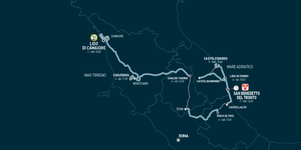 | 4 | Mountain | Sat, March 13 | Terni – Prati di Tivo | 148 km |