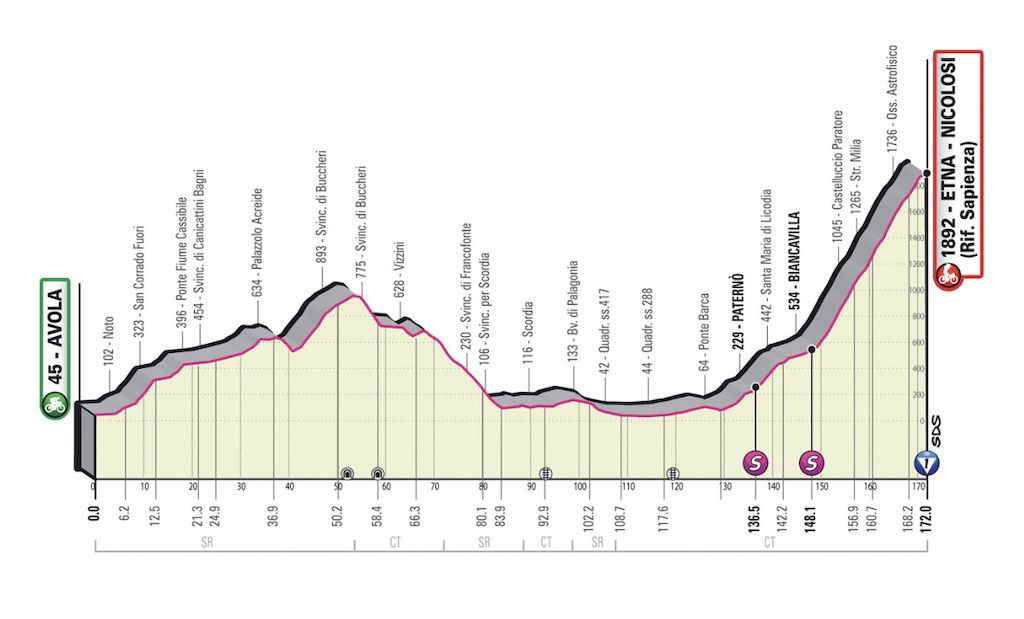 When we return, we’re on Sicily, headed to Mt Etna. That’s a volcano. Stage Four, folks! Sprints for two days following, then a hilly Stage Seven. Stage Eight finishes on a circuit, which is fun. And Stage Nine takes in 5km of climbing. We won’t know who will win by now, but we’ll certainly be able to identify who won’t.