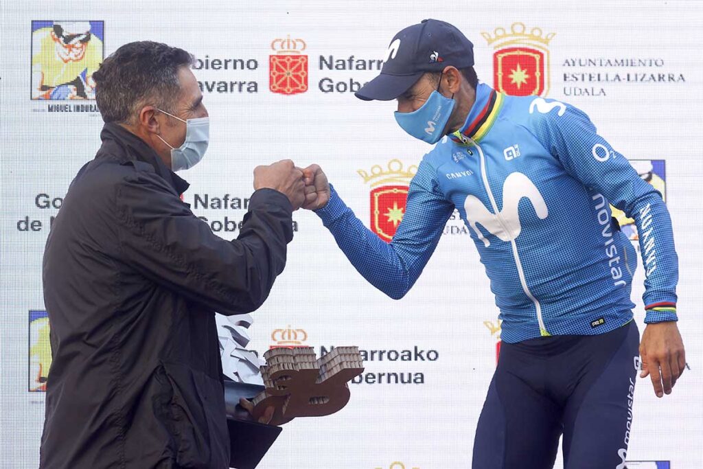 The day he stops, he will do so with a level as extraordinary as the legacy he’ll leave. There’s very few doubts about that after Alejandro Valverde (Movistar Team) showed again at Saturday’s 2021 GP Miguel Indurain, the big Navarra race back after the pandemic hiatus, the legs of his best days. The ‘campeonísimo’ from Murcia reached the finish line at Estella’s Paseo Inmaculada solo, following a display of class in the last ten kilometers of the race by the name of the rider who, together with Alejandro, has left a bigger impression in the Eusebio Unzué-led squads.