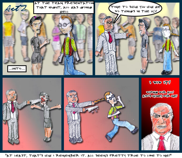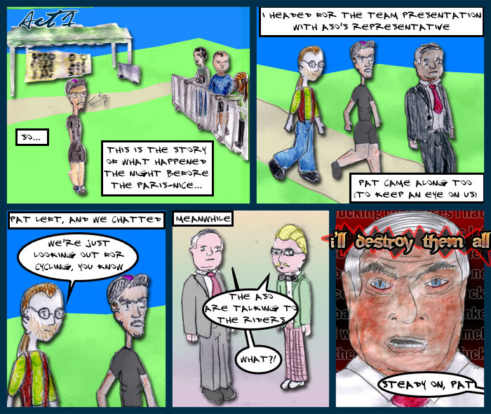 This month we’re doing something different: We present the true story of Patliacci, a three-part comic about the UCI, the ASO, and how pretentious rubbish like a cycling reimagining of the opera “Pagliacci” just doesn’t work.