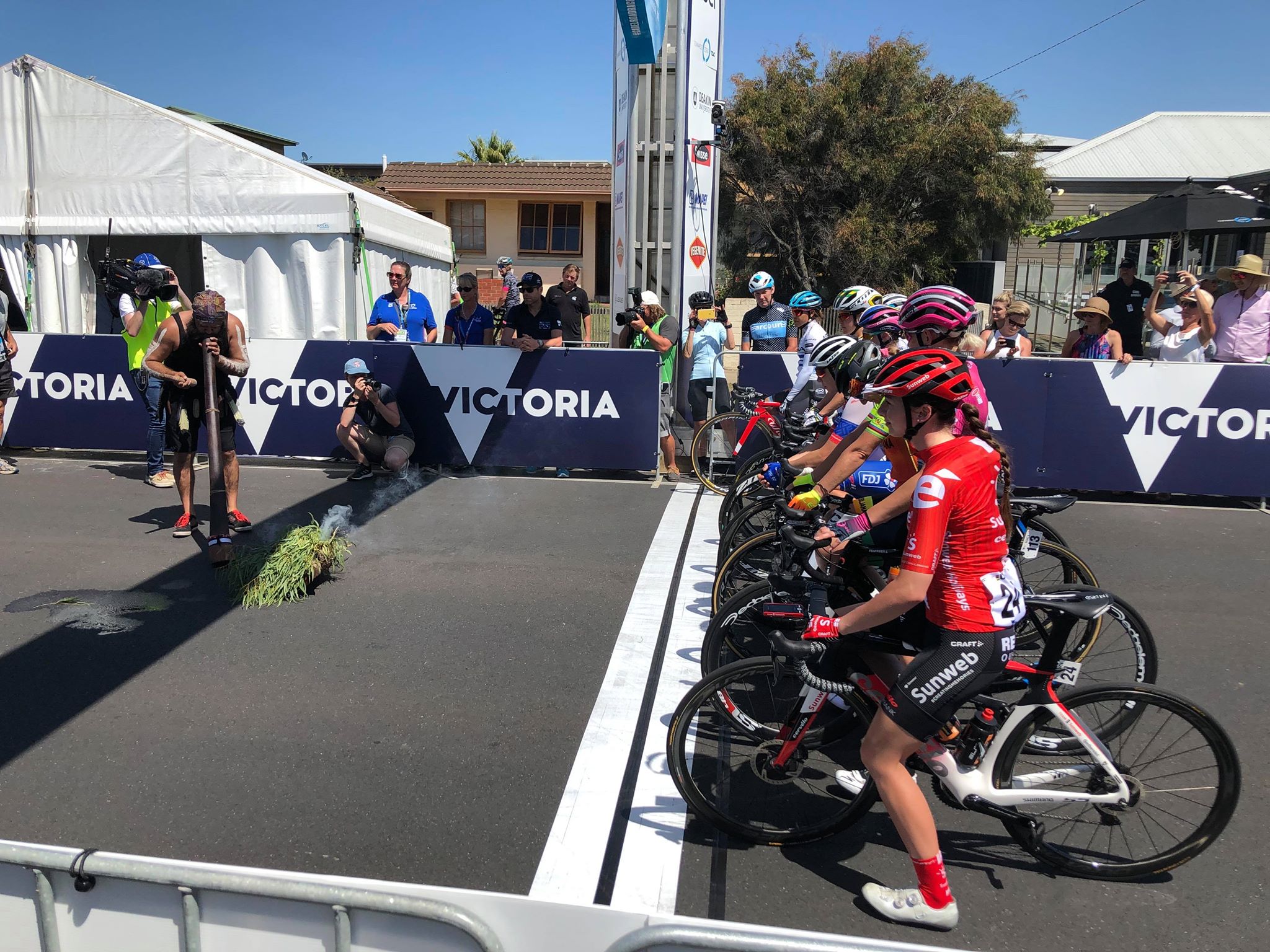 A didgeridoo to start the race. Also some kind of smoking leaves. Burning foliage isn’t exactly in short supply in Australia right now, so maybe it just rolled across the start line like a tumbleweed.