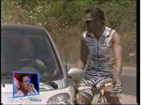 The basic premise for the prank is that Mario Cipollini and a friend who’s a bit too pixelated for us to identify are out for a ride, followed by a team director in the most emasculating car ever. Cipo is told that his bikes have been stolen by some people in a rubbish campervan, which then drives past. HILARITY ENSUES?!
