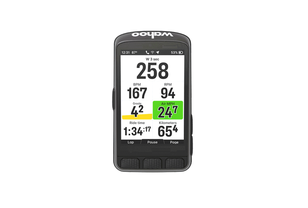 - Wind (pressure) sensor – Provides innovative feedback about headwind/tailwind/drafting conditions with a live effective air speed data field and post-ride Wahoo Wind Dynamics metrics