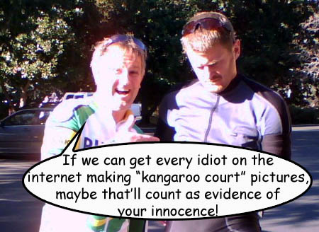 Speaking of people who’d put their hands in a fire if they thought it’d help their favorite cyclist win a complex debate about the efficacy of scientific procedures, the site Trust But Verify sprung up to endlessly examine the minutiae of the case. Wholesomely naive and heavy on the Trust part of the site’s title, it even included a photograph of the owner’s son giving Landis a thumbs up as its header image.