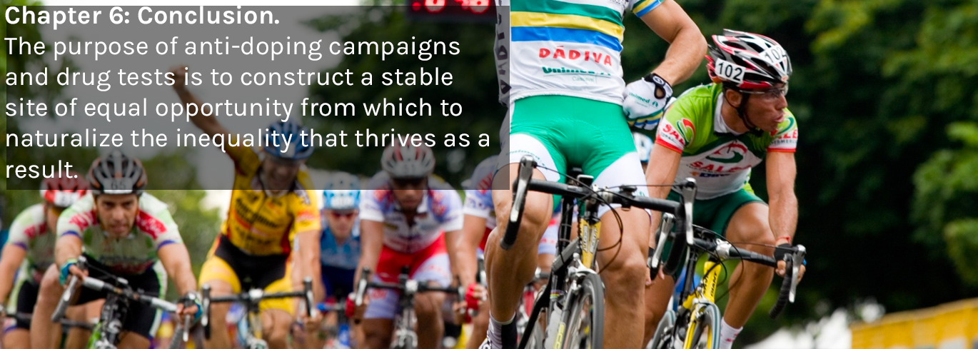 Part 6: Conclusion (& Bibliography). The case study of erythropoietin in the Tour de France is intriguing precisely because it acts in ways not fully explored by feminist critique, yet it nevertheless continues to reify the perceived “natural” boundaries upon which gender- and race-based oppressions make their foundations.