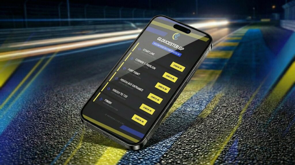 On event day, marshals tap ‘check-in’ when they’re at their assigned location and you instantly see that they’re in the right place.