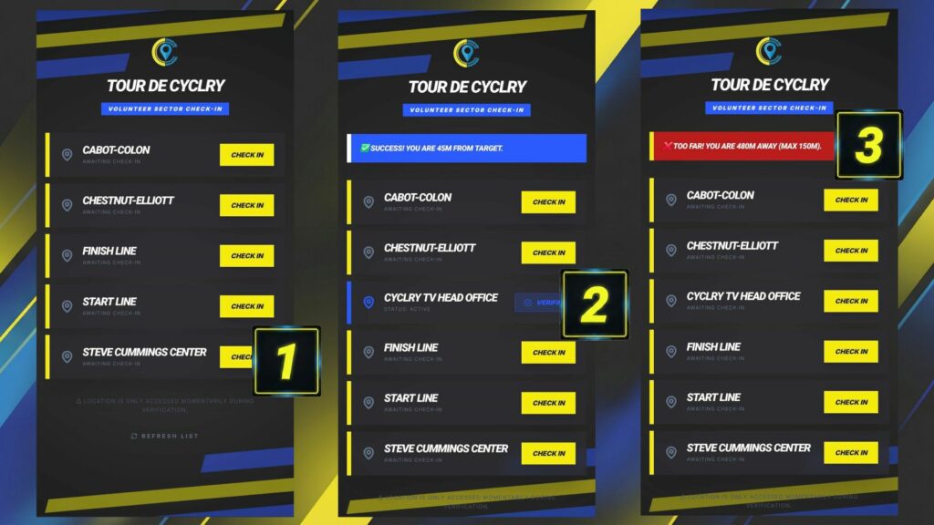 - If they are too far from the location, they won’t be able to check in, preventing marshals from standing in the wrong spot