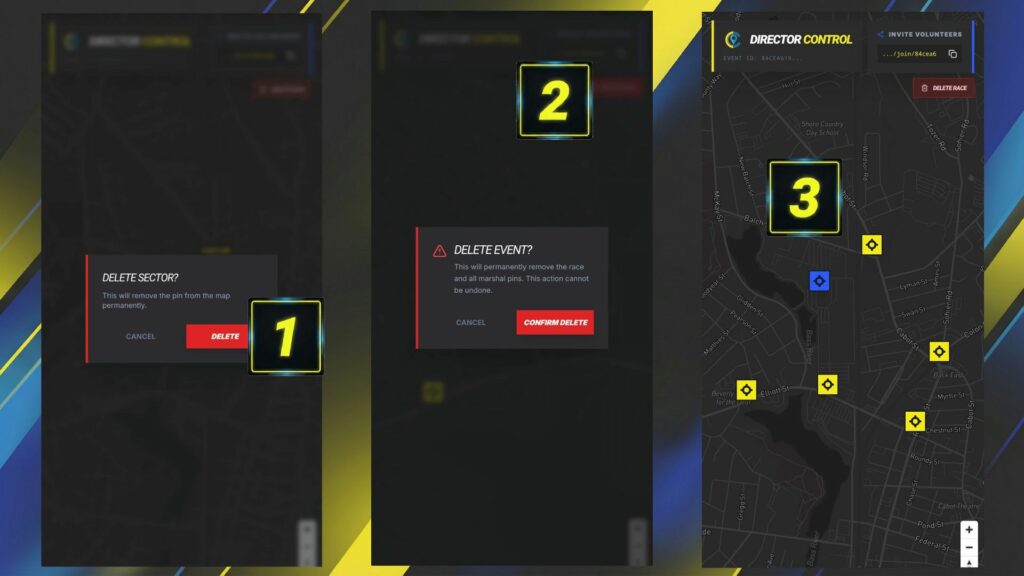 - Pins will instantly turn from yellow to blue when a volunteer checks in, showing at a glance that all marshals are in place