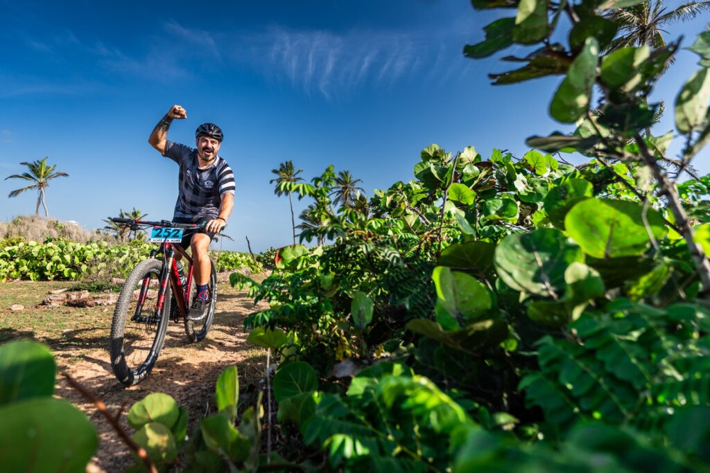 Setting out from a paradise-like Dominican beach and with the crystalline Caribbean Sea in the background, the first edition of La Leyenda del Caribe began on Monday with the Prologue stage. Two hundred racers representing 25 different nationalities crossed the starting line on the beach of Hotel Ocean El Faro to cover 16km of challenging terrain that put the cyclists to the test and gave them a taste of what they’ll to face in the coming days around Punta Cana.