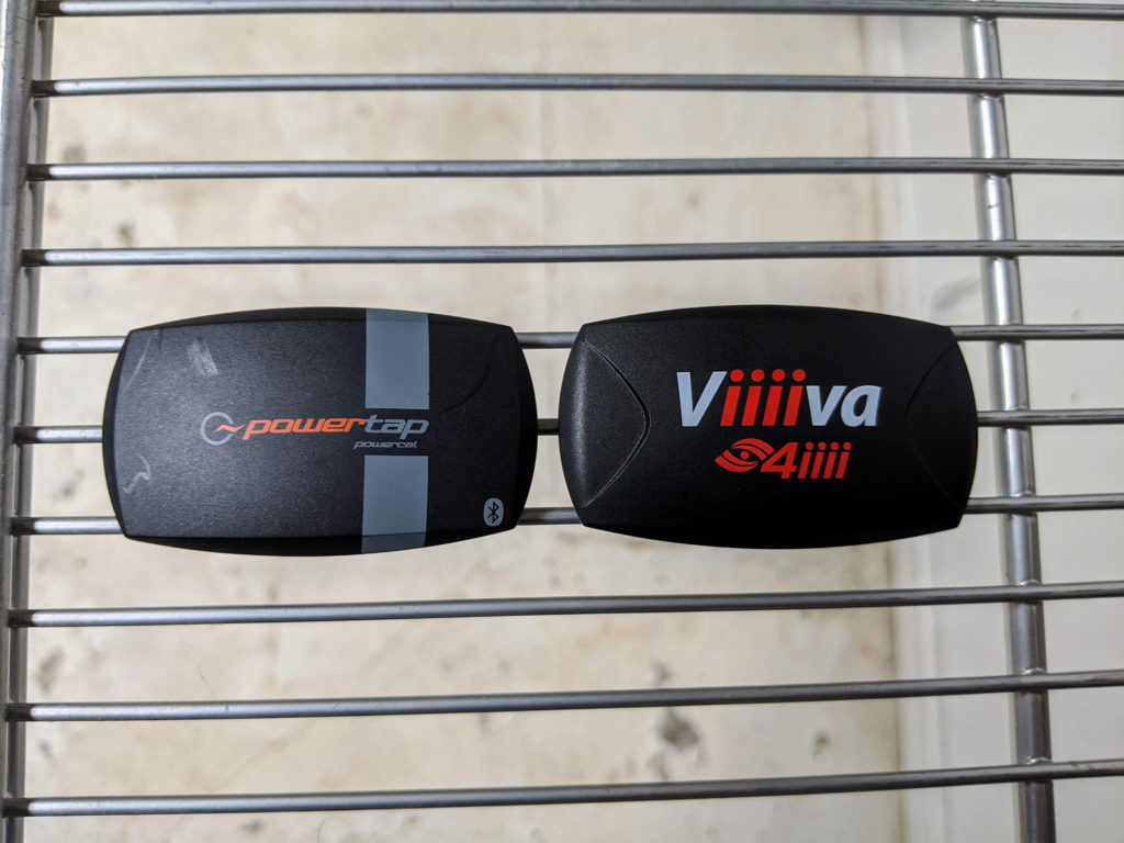 The PowerCal looks like a regular heart rate monitor. It uses the same connections and strap you’re used to, and it’s no bulkier than other heart rate monitors on the market. Next to the 4iiii Viiiiva, another heart rate monitor that does something quite interesting, it’s hard to tell them apart beyond the graphics printed on them.