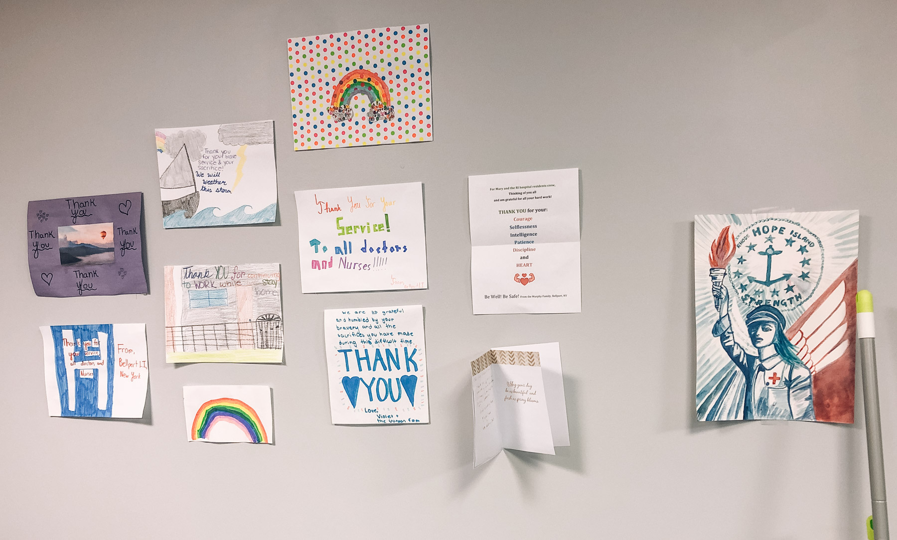 “We live in a really tiny house and now both my husband and I are working from home. I had a baby in July, and we also have a three-year-old – she used to be in school, but then the school’s closed. So the four of us are here in the house and I’m trying to take video calls. I have a little room that’s sectioned off and we’ve now put a lock on the door after my daughter came in running in one evening when I was speaking to a patient shouting, ‘Mommy, we have pizza!’”