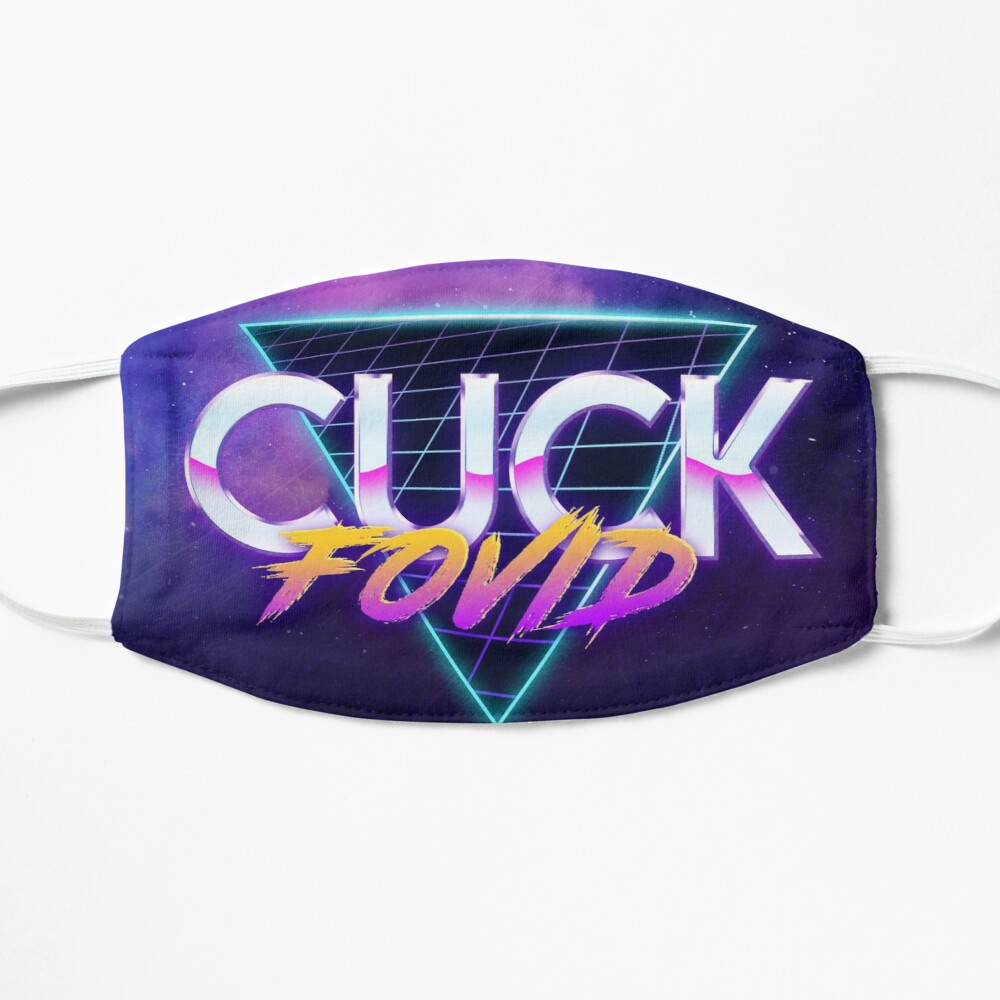 You can buy it for $10, or $8 in certain circumstances. If you’re outside of the US, you can buy it in your local currency and it’ll be made and shipped from wherever you are. Buy CUCK FOVID retrowave face mask.