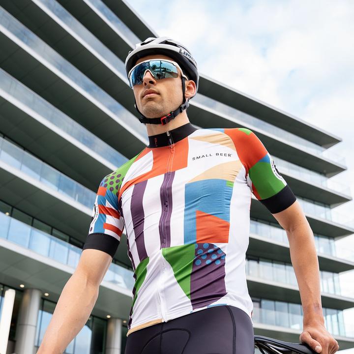 Partnering with cycling stalwarts Paria, the vibrant and eye catching design aims to brighten even the cloudiest of rides, with cues taken from Small Beer’s brand colours, bottle and brewing kit shapes to make up the geometric pattern. Through the partnership, both brands have worked together to produce a jersey made using Green Soul Technology, a material composed of 100% sustainable, recycled fibres which have been treated with the highest standards of environmental dyeing and finishing processes. In sourcing this material, Small Beer and Paria have created a jersey that provides maximum performance with minimum impact on the planet.