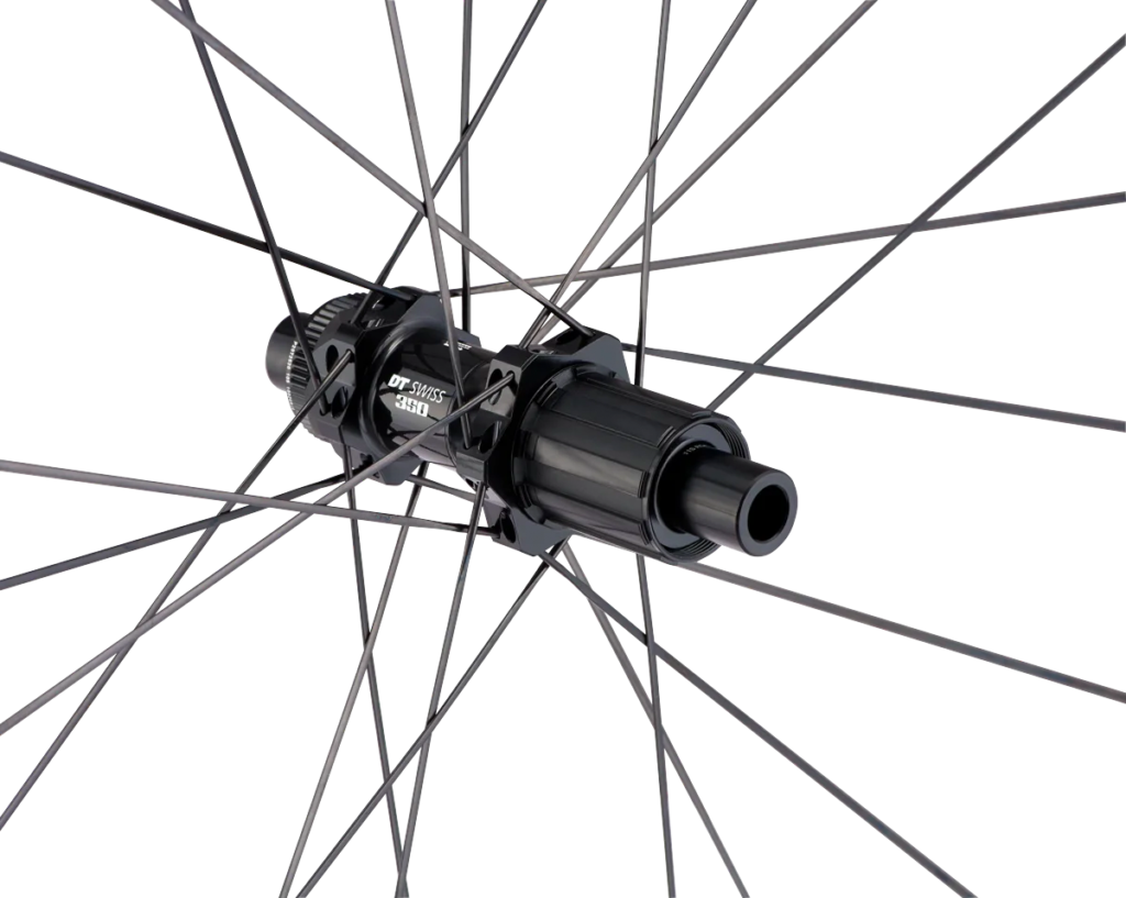 - Hubs: DT Swiss 350, CenterLock, Sealed Cartridge bearings, DT Swiss Star Ratchet internals, 12mm thru-axle compatible, convertible to Quick Release. Shimano HG freehub.
