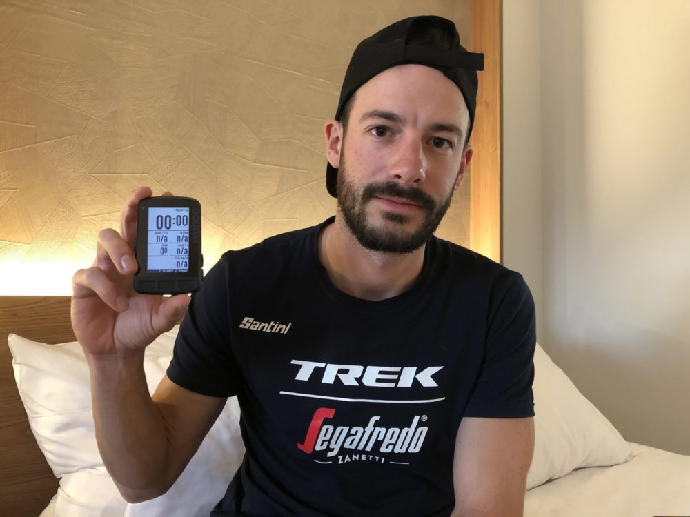 He’s holding the Wahoo Elemnt Roam—no, we’re not doing their stupid capitalization—because Trek-Segafredo’s 43 riders are now contractually-obliged to race and train with the Elemnt Roam bike computer and Tickr heart-rate monitor.